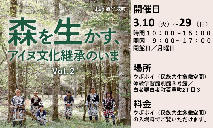 【3月10日(火)】ウポポイ展示イベント「森を生かす、アイヌ文化継承のいまVol.2~北海道平取町~」開催!