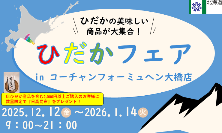 【12/12(金)~1/14(水)】ひだかフェアinコーチャンフォー ミュンヘン大橋店 開催!!