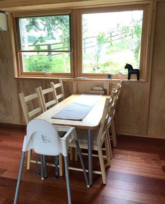 小高い丘の上、サラブレットが暮らす牧場の敷地内に佇む「星のイスキア」。 スウェーデン仕様のトレーラーハウスを2棟連結した、温かみがある作りが特徴です。 窓からは、一面に広がる緑の放牧地と穏やかに暮らす馬の親子・夜には、手が届きそうな ほどの満天の星空・アポイ山岳の向こうから昇るご来光などの景色が見えます。 また、季節によっては、牧場での作業体験も可能です。(※体験料金別途)