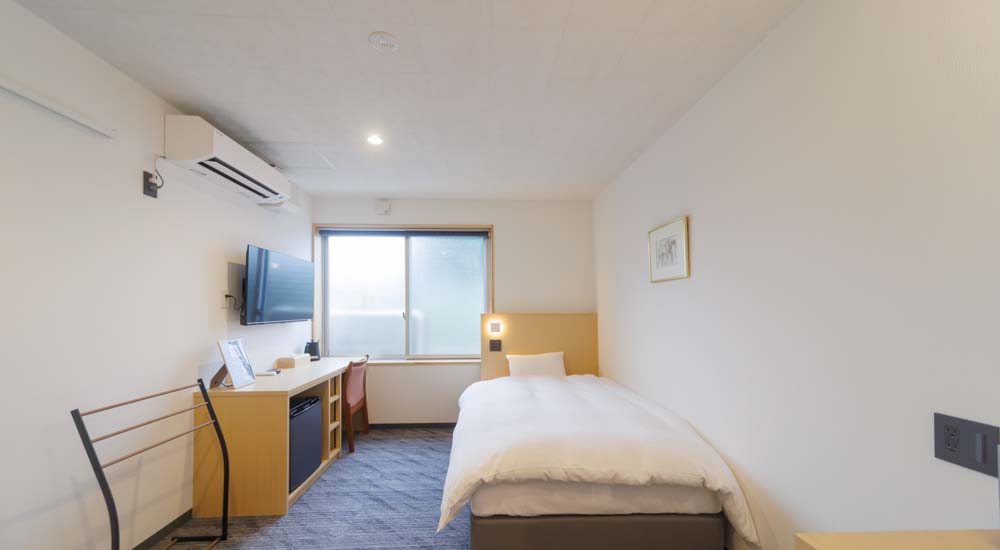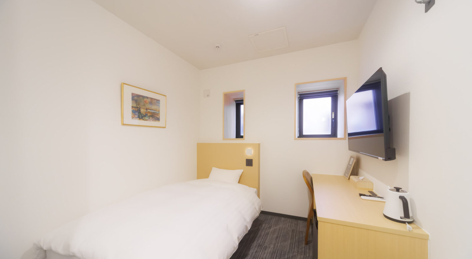 飲食店街の中心にあるため観光の拠点としてちょうどいい場所にあり、全室に広々デスクと高速