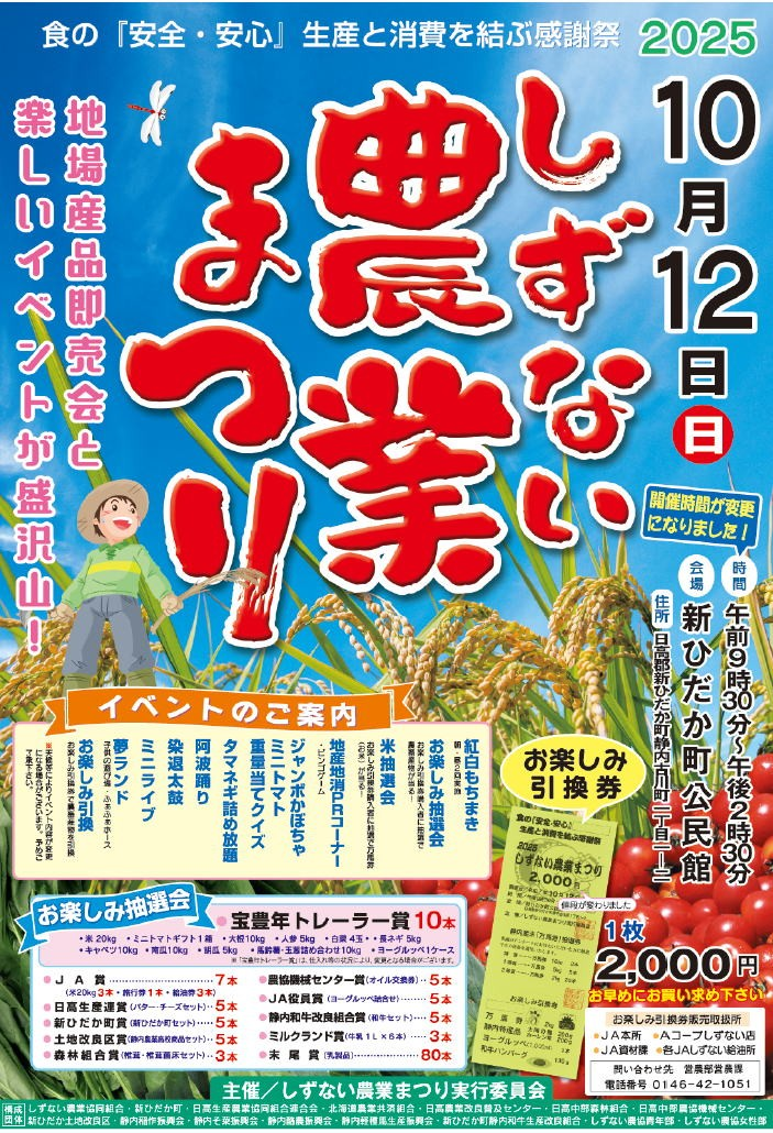 新ひだか町公民館にて地場産品の特売等を行う『しずない農業まつり』が開催されます!