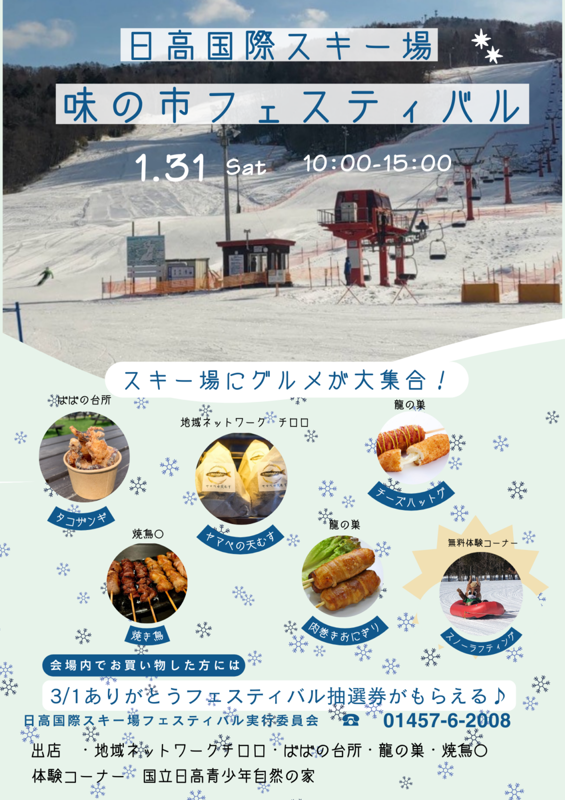 【1月31日(土)】日高国際スキー場 味の市フェスティバル 開催!!
