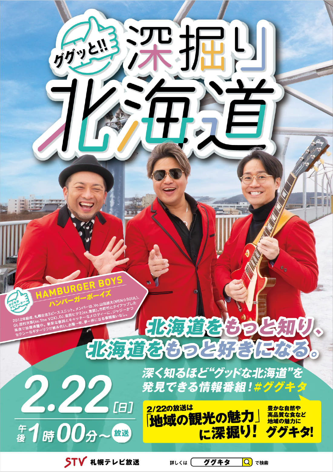 記事を探す ホーム 記事を探す 【2月22日(日)放送】『ググッと!!深掘り北海道(ググキタ)』にて日高地域が紹介されます! 2026年2月17日 新ひだか町 イベント お知らせ グルメ 【2月22日(日)放送】『ググッと!!深掘り北海道(ググキタ)』にて日高地域が紹介されます! 2月22日(日)13時から放送予定の北海道の様々なことを深掘りする人気情報番組『ググッと!! 深掘り北海道(ググキタ)』内で、日高地域のお店が紹介されます! ぜひ、この機会に番組を視聴して、日高地域や北海道の魅力を発見しませんか! 放送日時2026年2月22日(日)午後1時00分~放送局STV 札幌テレビ放送 最近の投稿 【2月22日(日)放送】『ググッと!!深掘り北海道(ググキタ)』にて日高地域が紹介されます! 【2月24日(火)】観光まちおこし・ひとづくりワーキンググループ開催! 【祝】日高自動車道「日高厚賀 IC~新冠 IC」2026年2月28日(土)開通!! 【3月1日(日)】第4回うらかわひなまつり 開催! 日高町の複合施設「とみくる」にて日曜劇場「ザ・ロイヤルファミリー」×ウマ娘「シンデレラグレイ」特別パネル展示中 アーカイブ 2026年2月 2026年1月 2025年12月 2025年11月 2025年10月 2025年9月 2025年8月 2025年7月 2025年6月 2025年5月 2025年4月 2025年3月 2025年2月 2025年1月 2024年12月 2024年11月 2024年10月 2024年9月 2024年8月 2024年7月 2024年6月 2024年5月 2024年4月 2024年3月 2024年2月 2024年1月 2023年12月 2023年11月 2023年10月 2023年9月 2023年8月 2023年7月 2023年6月 2023年5月 2023年4月 2023年3月 2020年12月